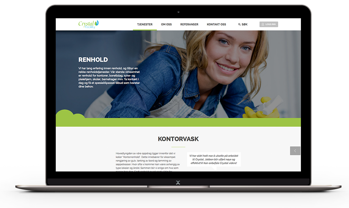 Crystal Facililty hadde behov for en enkel nettside samt en større intranett løsning. Begge ble levert på Getynet plattformen, og løser de utfordringene CrystalFacility hadde. Spesielt ble skreddersydd løsning for intranett et godt verktøy for kunden. Både med rapportering og kontroll av renholdstjenestene sine.